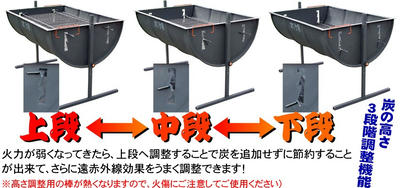 【ドラム缶バーベキューコンロ】は炭の高さ3段階調整機能付き!