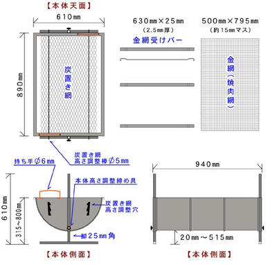 ドラム缶を半分にカットして、炭を中に入れて火力がちょうどいいように設計しました。